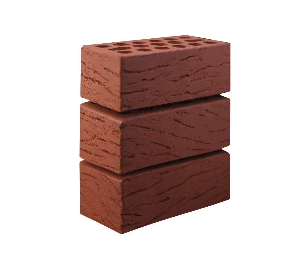 Кирпич лицевой керамический «Красный» «Рустик» пустотелый утолщенный