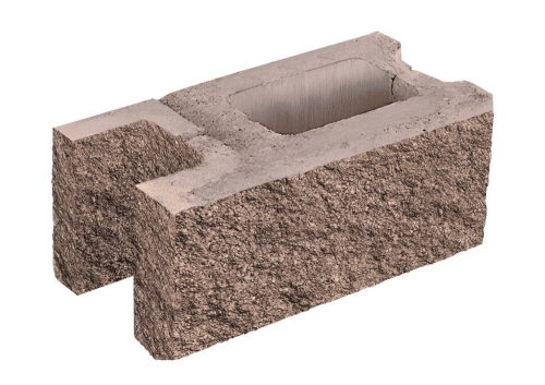 Заборный блок колотый, стеновой, 380х190х140мм, коричневый